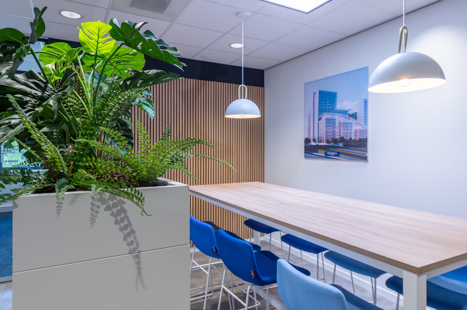 Tjaden is een bedrijf gespecialiseerd in geotechniek en grondwatertechniek. Het bedrijf heeft een rijke geschiedenis die teruggaat tot 1895 en maakt sinds 2017 deel uit van de Hölscher Group. In zijn voortdurende streven naar groei en innovatie stond Tjaden voor de uitdaging om een nieuw kantoor te vestigen in Zevenbergschen Hoek. Dit kantoor moest niet alleen functioneel zijn, maar ook de identiteit van Tjaden uitstralen. De nieuw aangestelde directeur van Tjaden had een duidelijke visie: de huisstijl van het bedrijf moest in alle aspecten van het interieur worden doorgevoerd. Tjaden benaderde ons voor deze ambitieuze taak. Met onze creatieve ideeën wisten we de klant te overtuigen om deze samenwerking aan te gaan.